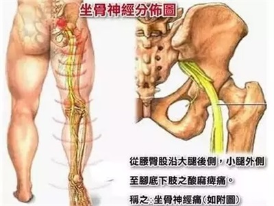 坐骨神经痛是以坐骨神经径路及分布区域疼痛为主的综合征。坐骨神经痛的绝大多数病例是继发于坐骨神经局部及周围结构的病变对坐骨神经的刺激压迫与损害,称为继发坐骨神经痛;少数系原发性,即坐骨神经炎。