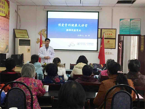▲骨科杜华主任在石化天桥社区会议室开展骨科健康大讲堂
